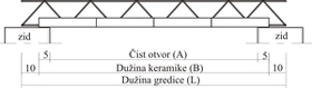 - osovinski razmak između gredica b=40cm